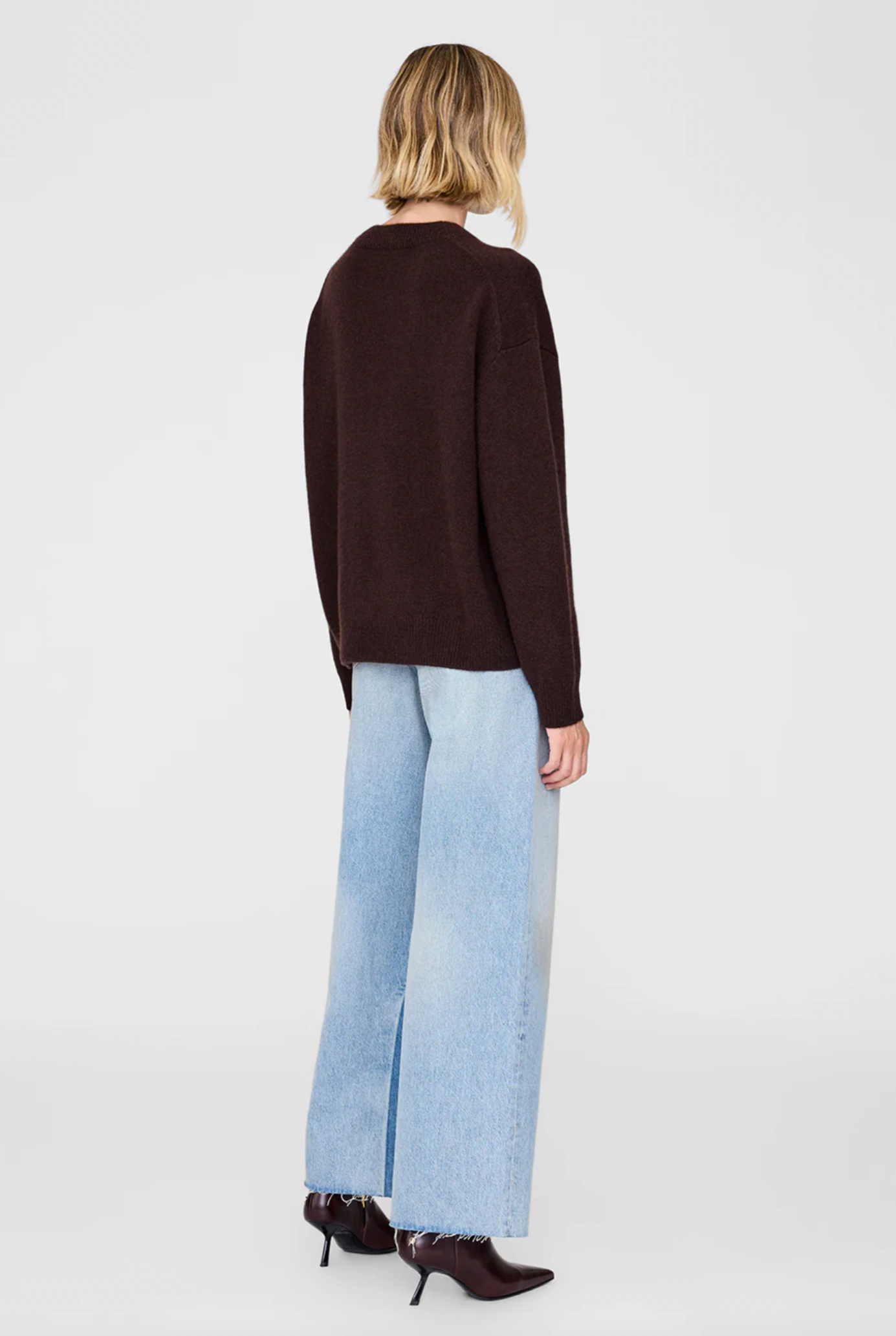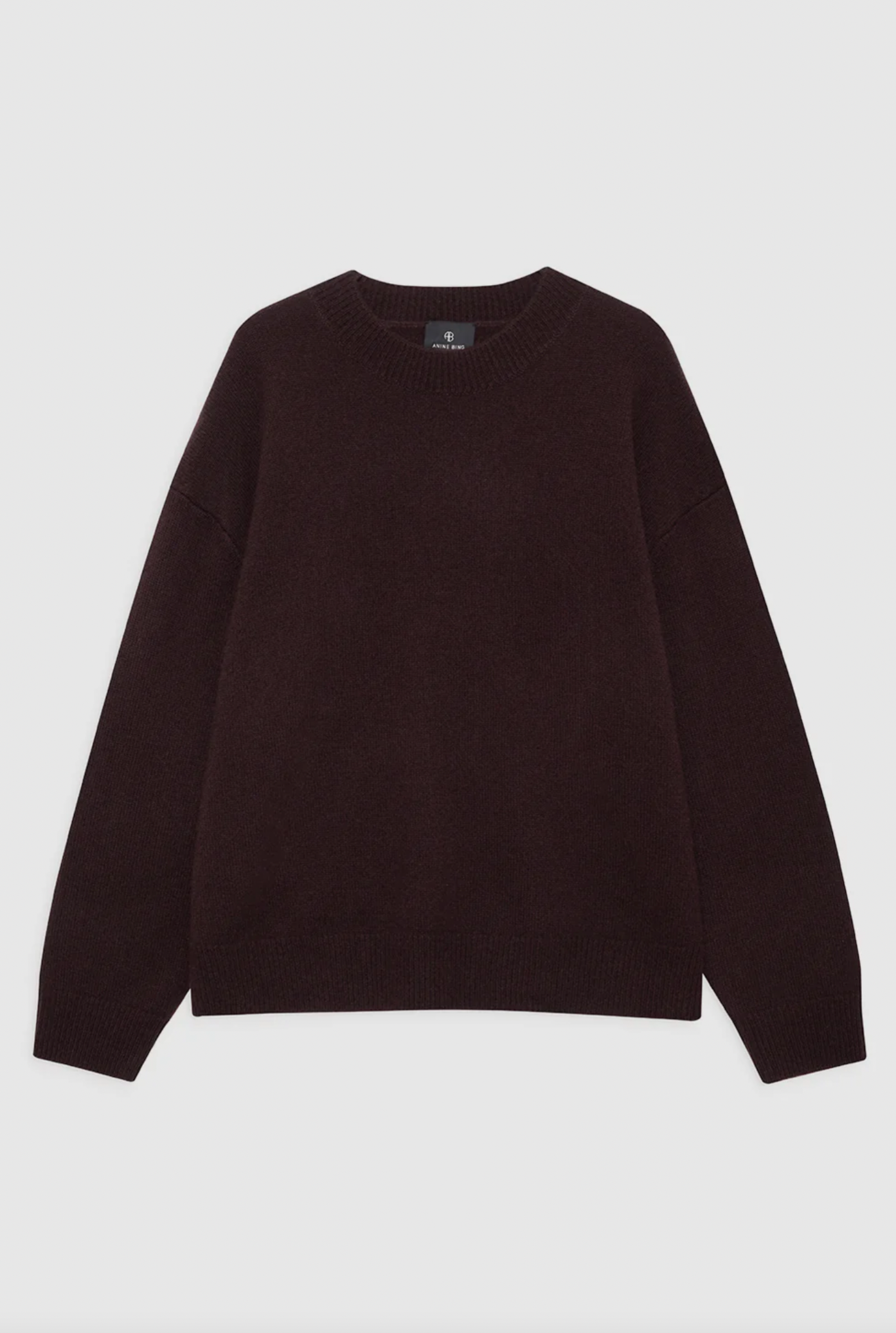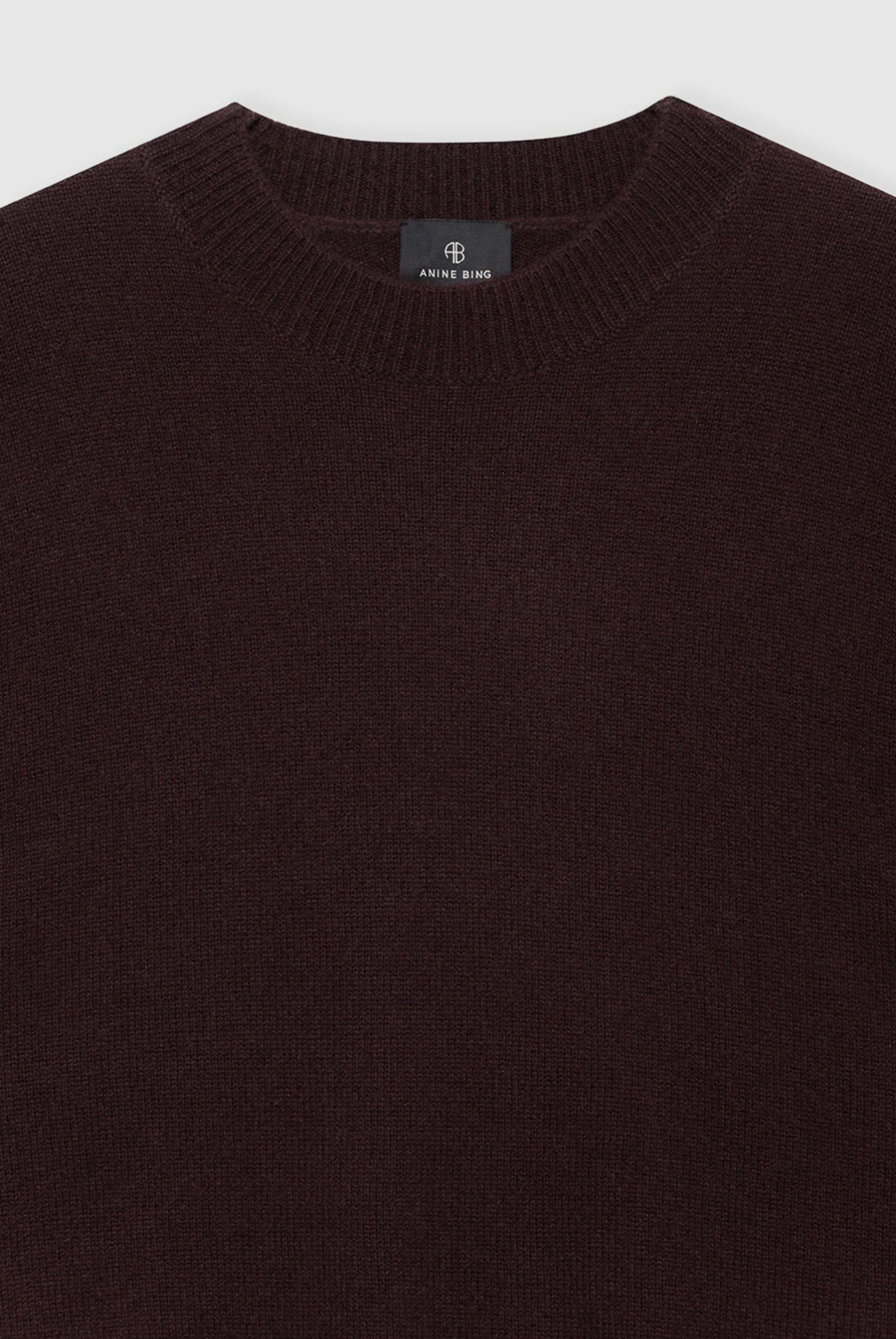 A soft crewneck sweater made from midweight 100% cashmere in deep brown.