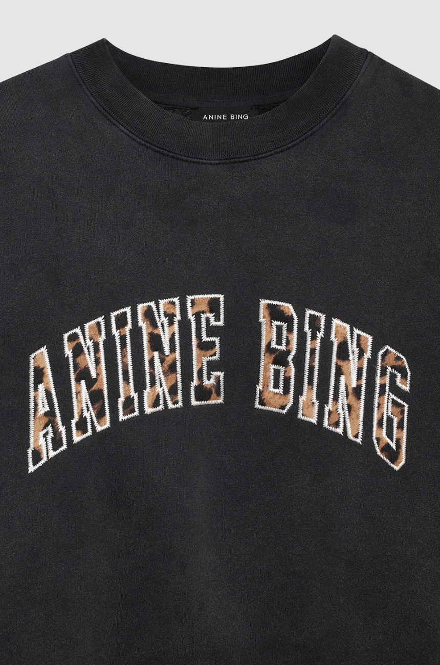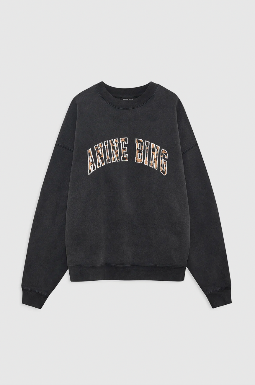The Miles Oversized Sweatshirt is an oversized crewneck pullover made from midweight 100% organic cotton fleece in a washed black. This relaxed casual features a custom ANINE BING letterman chenille patch graphic at the chest.