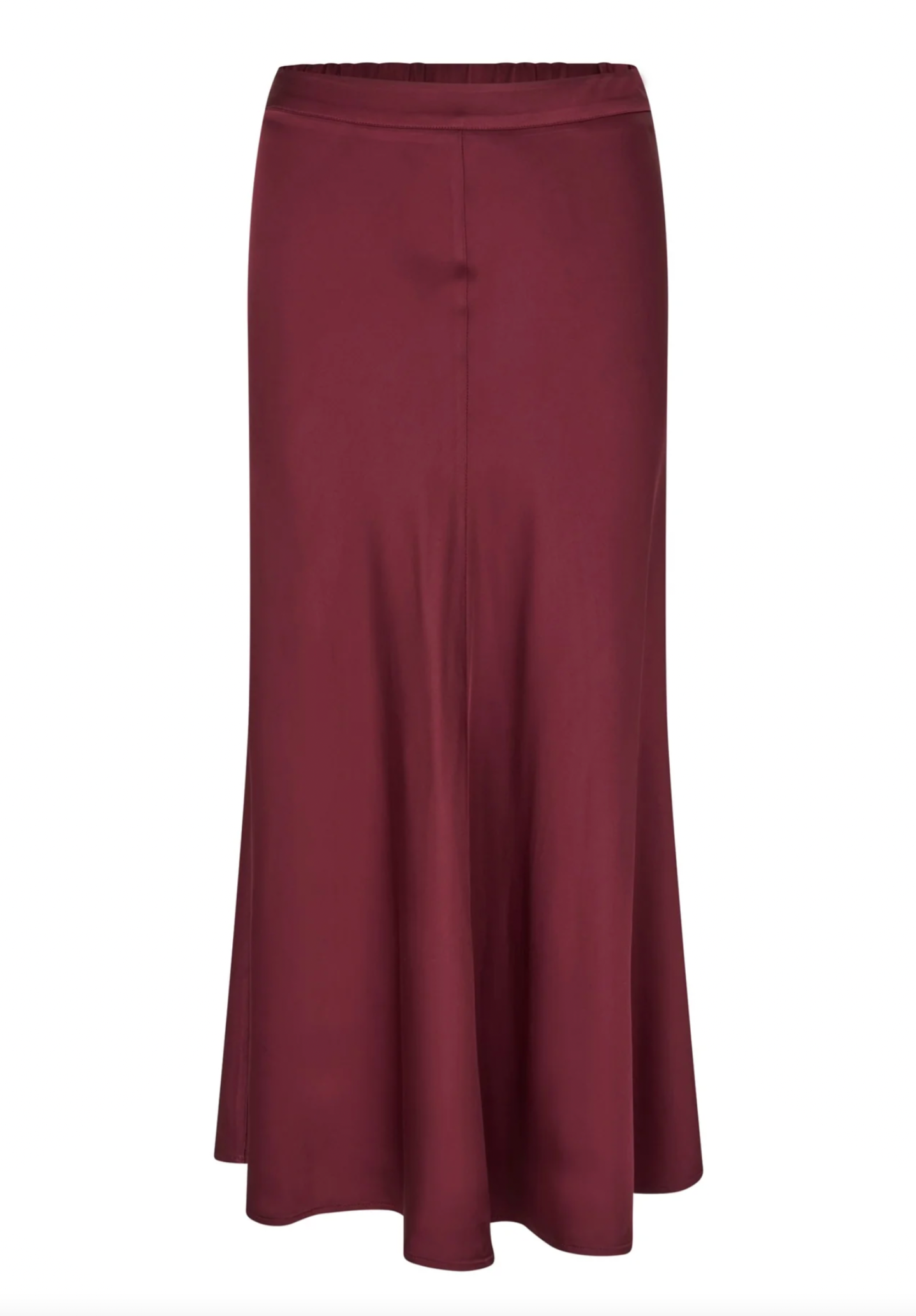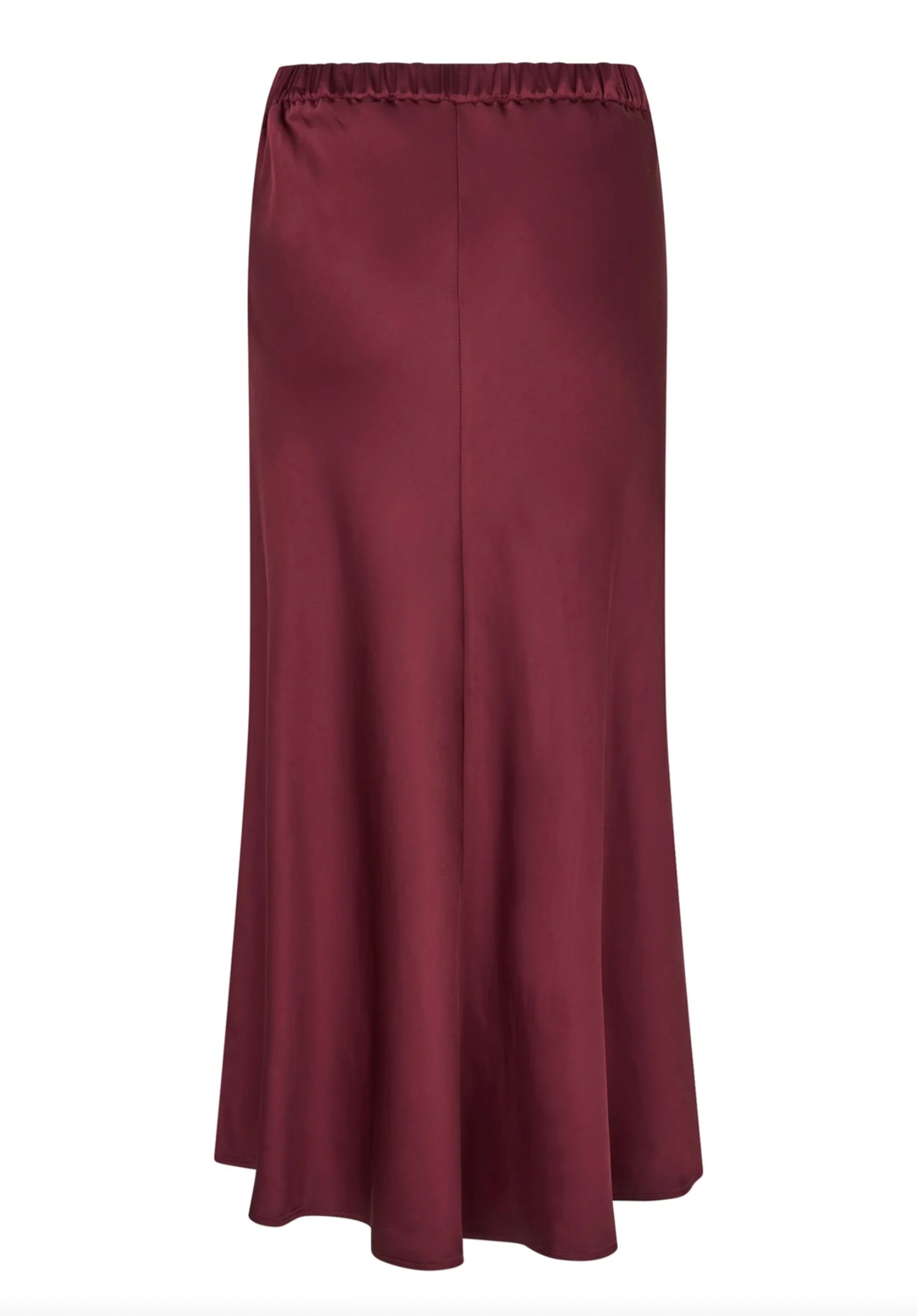 A bias cut skirt is a versatile and stylish wardrobe staple for any woman. This version in black stretch viscose satin skims the hips before falling to mid calf and has a waistband that is elasticated at the back.