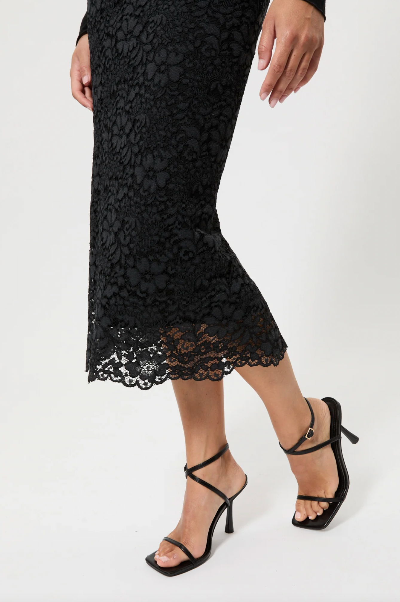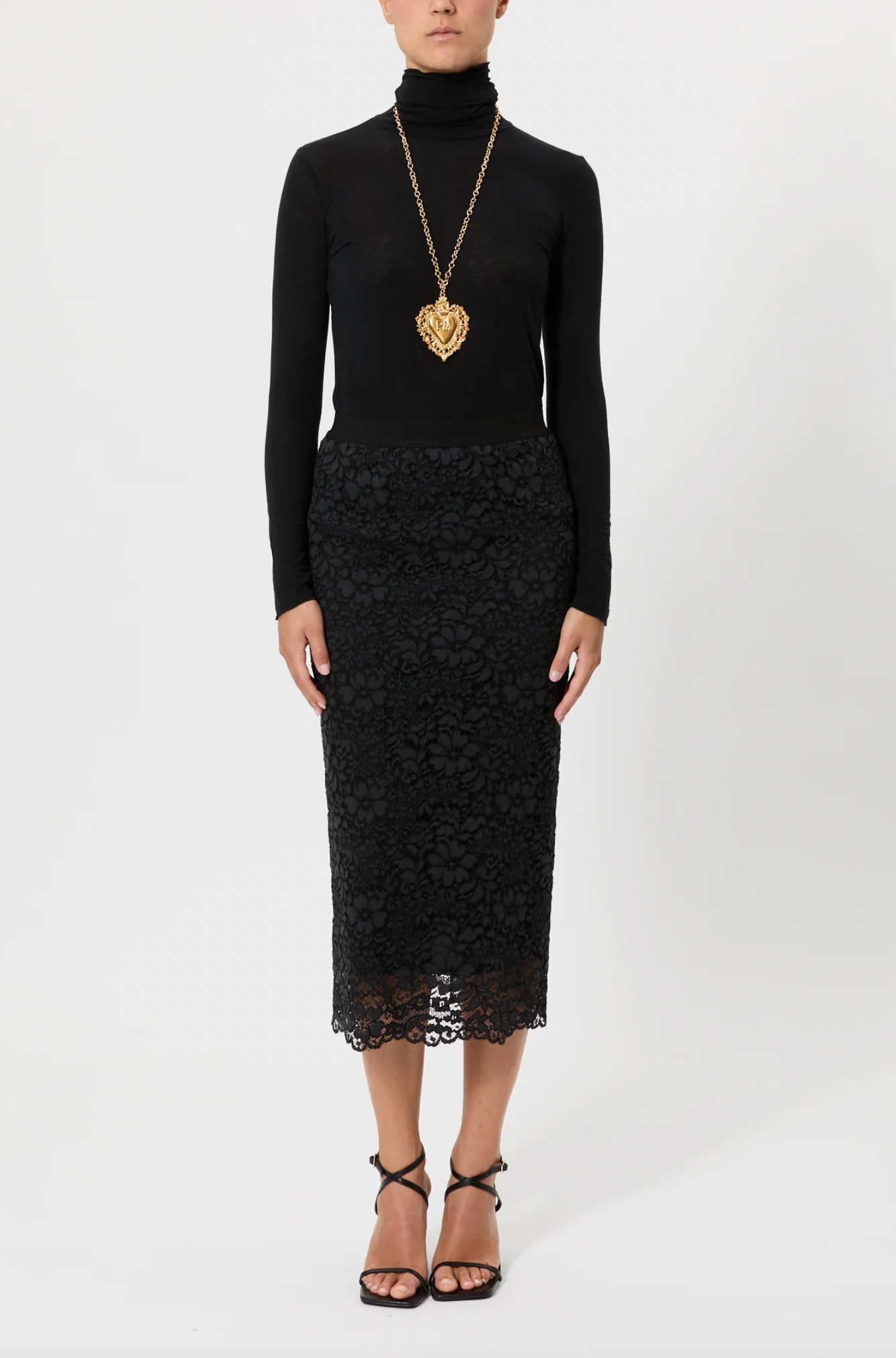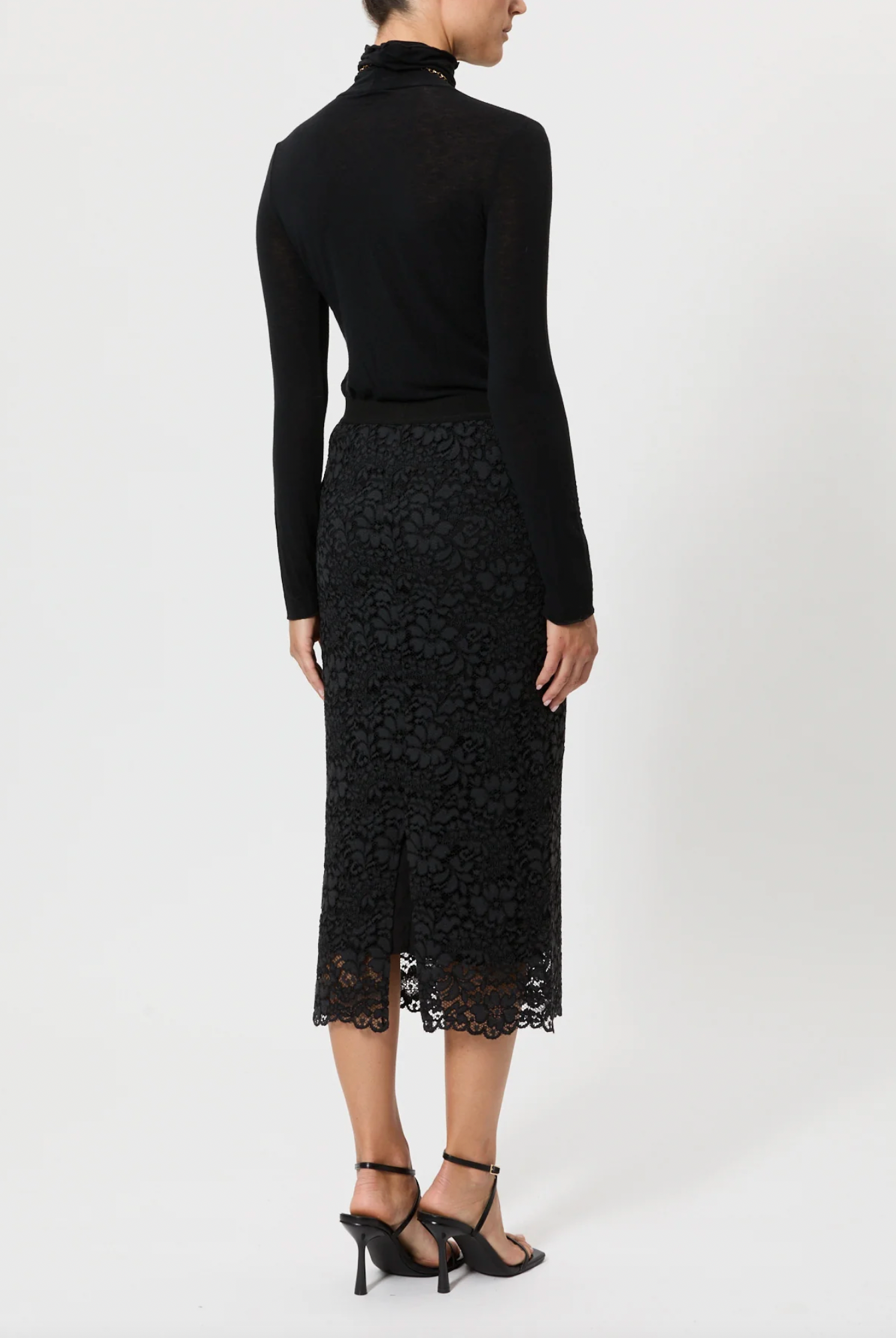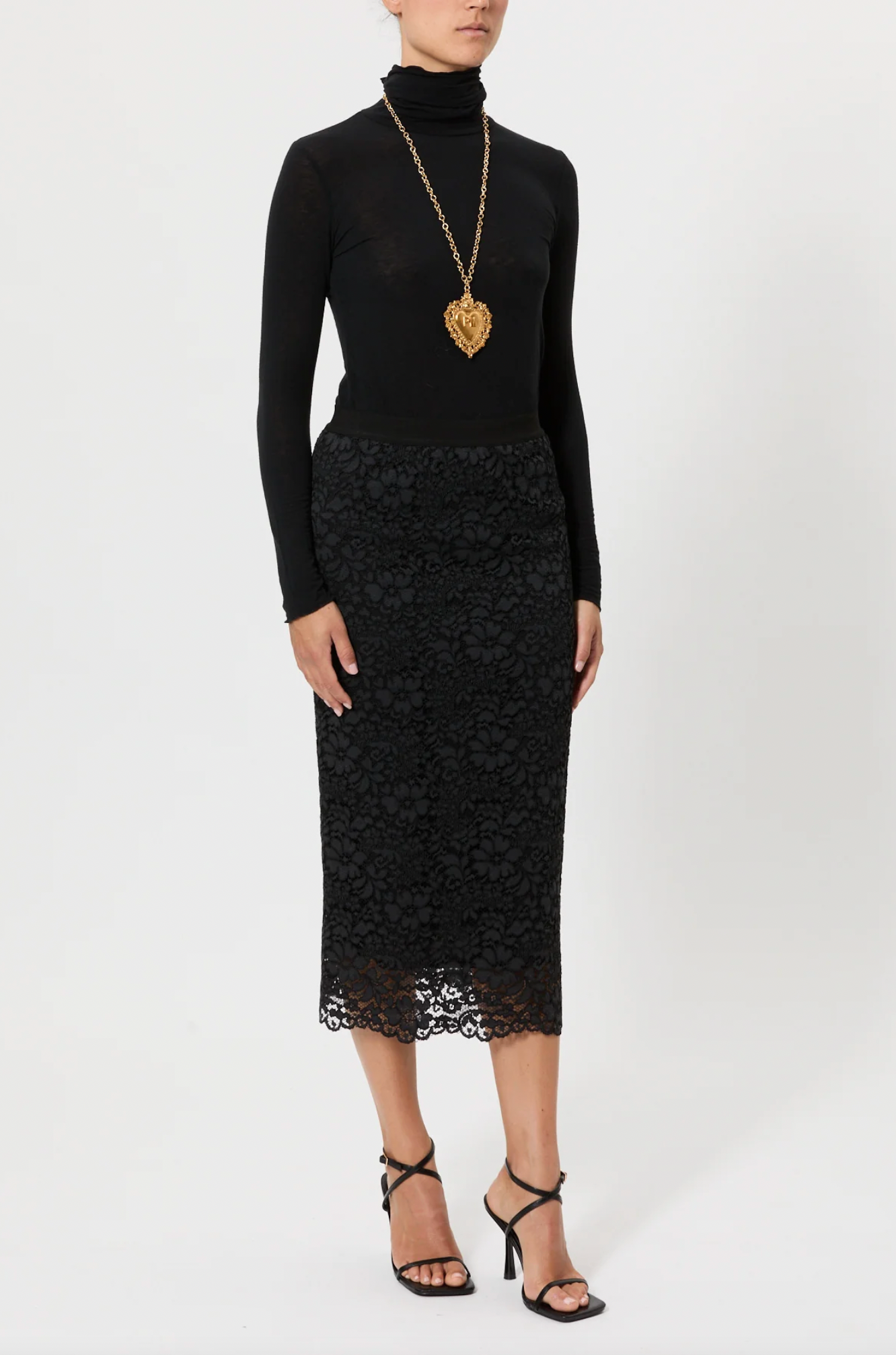Lace pencil skirt with elastic waist. 100% Made in Italy, produced in Florence by skilled artisans.