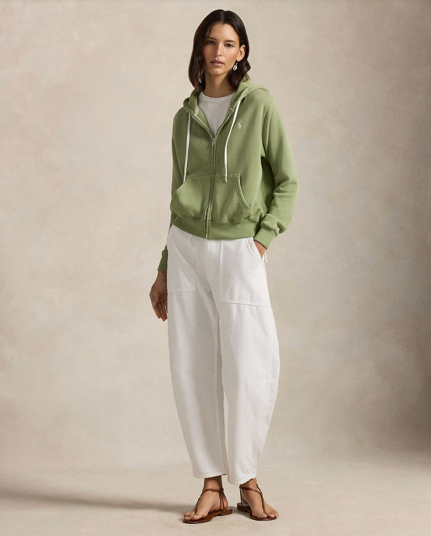 Made with soft fleece for a lived-in feel, this relaxed-fitting hoodie has a full-zip placket with a split kangaroo pocket and is embroidered with our signature Pony at the chest.