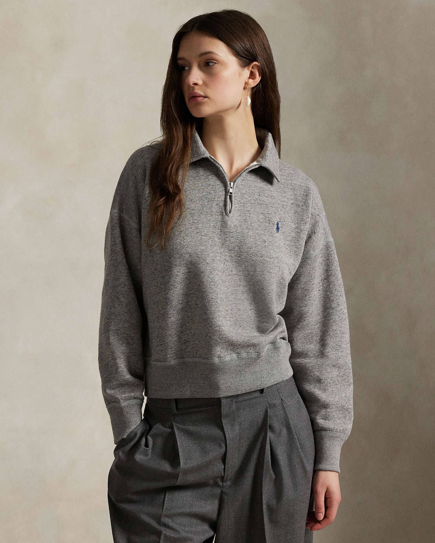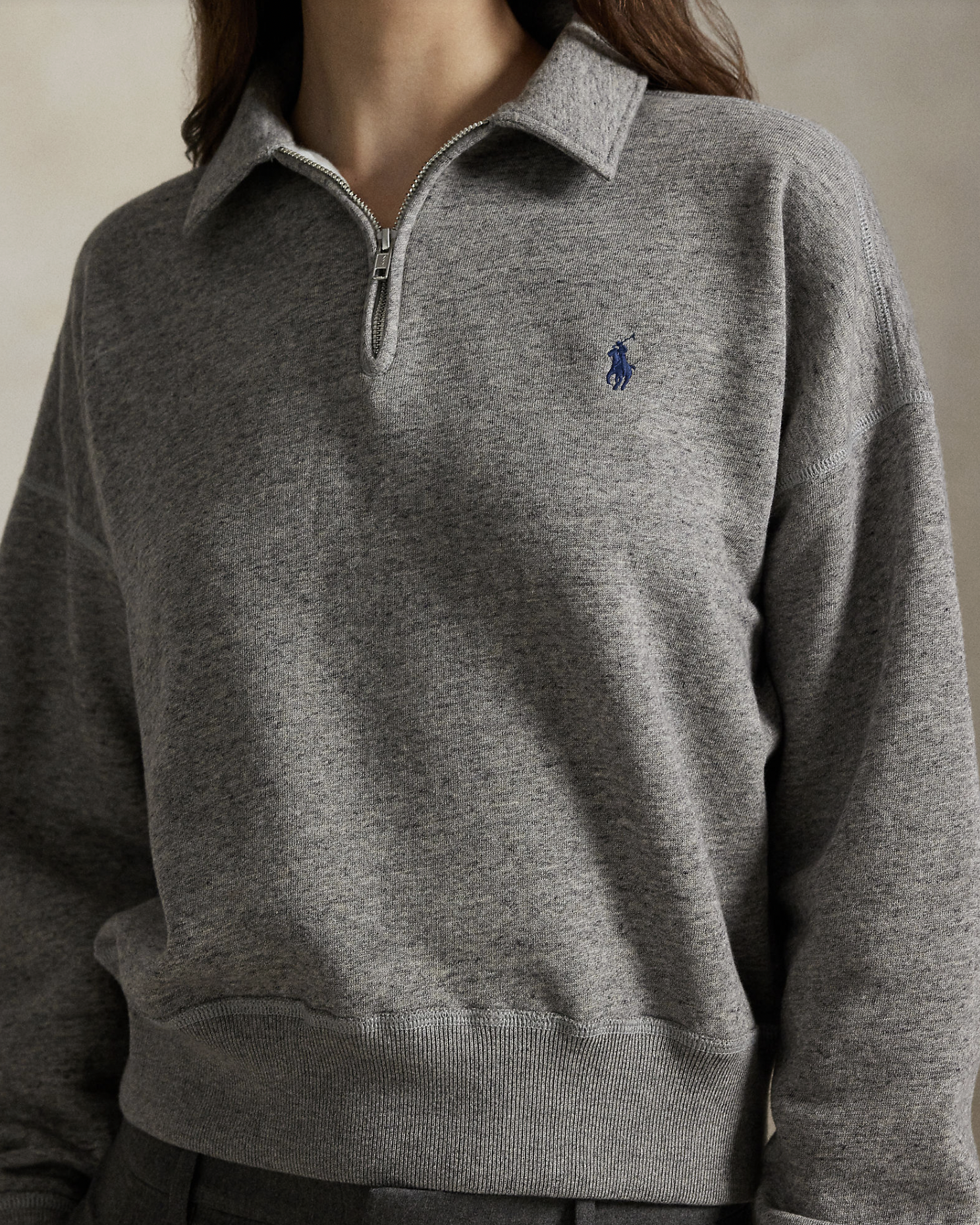 This cotton-blend fleece quarter-zip is cut for a relaxed fit and has been garment-washed for softness. It’s accented with our signature embroidered Pony at the chest.