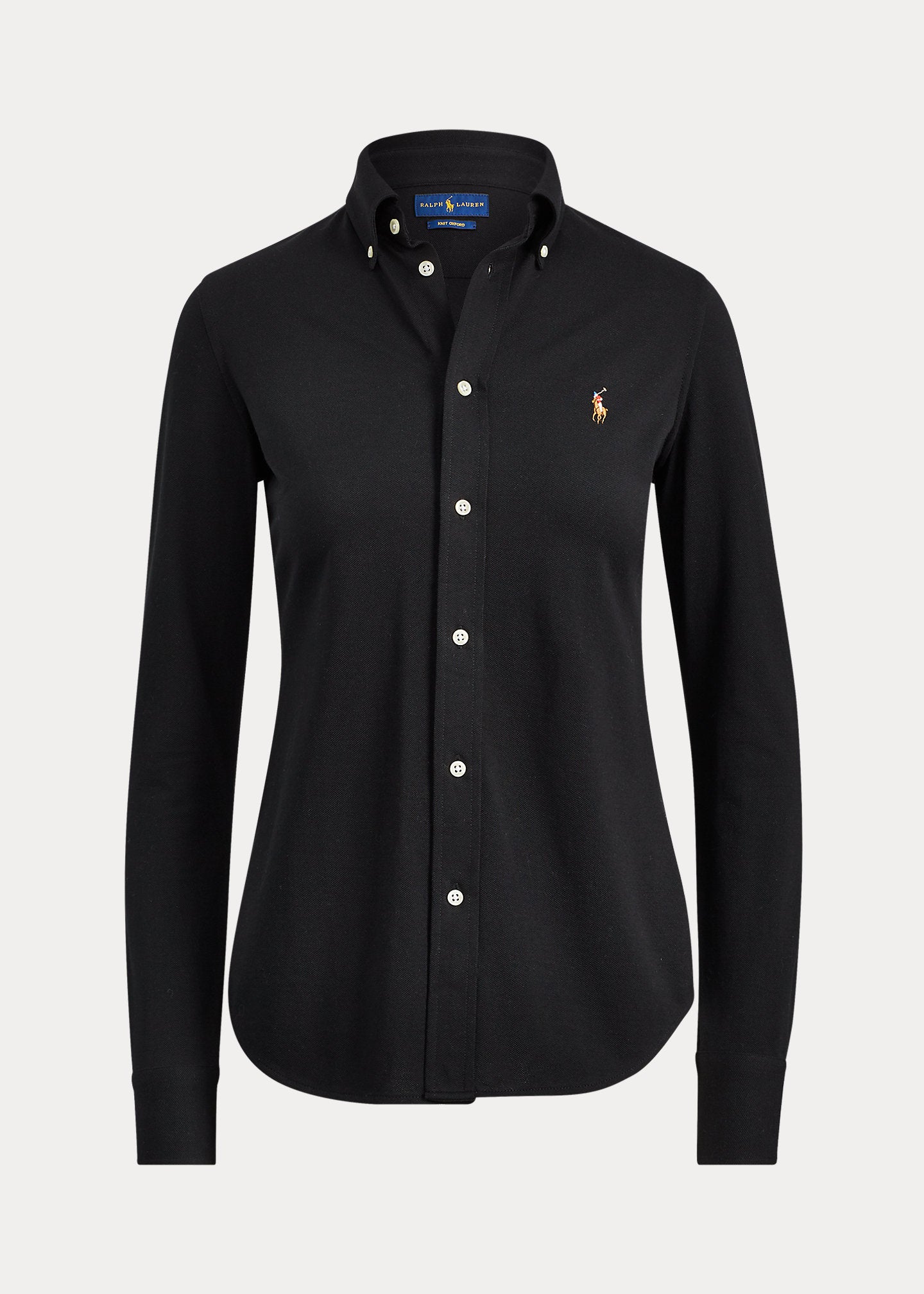 Although it takes its name from England's most famous academic institution, the oxford shirt has its origins on the backs of early British polo players, who wore shirts made from oxford cloth on the field and used pins to keep their collars in place during rigorous play. Over time, pins were replaced by buttons, and the oxford shirt became a staple of casual, prep-influenced style, and a signature element of the iconic Polo Ralph Lauren aesthetic. This breathable cotton piqué version combines the tailoring of an oxford with the comfort and ease of a Polo shirt, and is cut for a flattering slim fit.