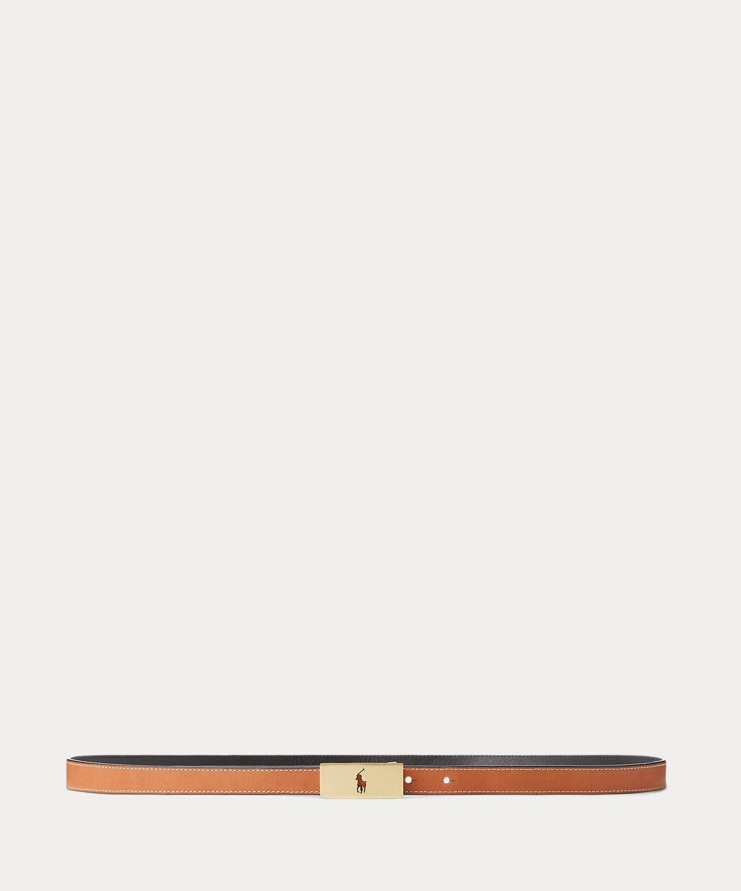 Part of the Polo ID collection, which is inspired by a sense of adventure, romance and optimism, this slender reversible belt is crafted from full-grain vachetta leather and showcases the silhouette of our signature Pony cut out on a gold-tone brass rectangle buckle.