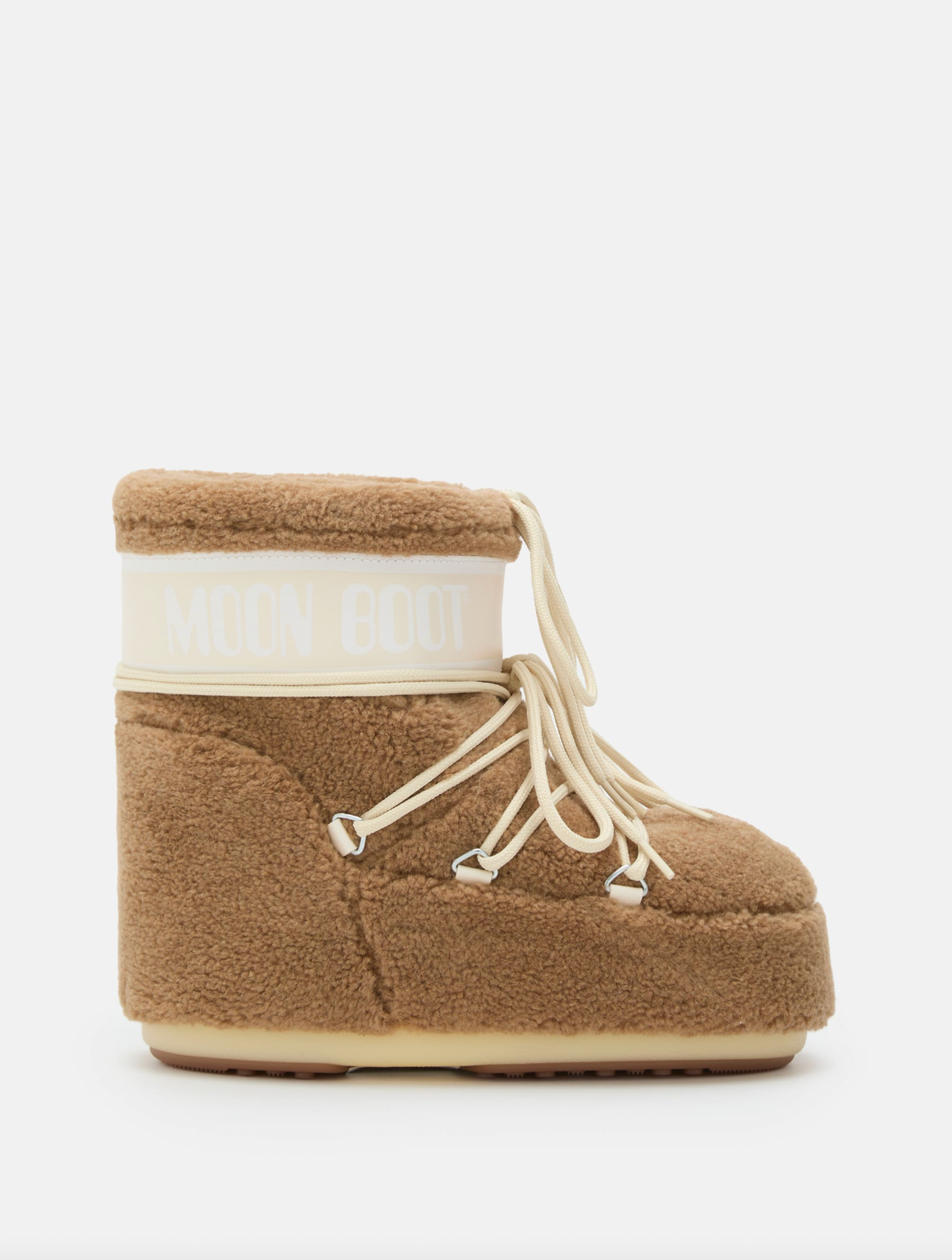 Wrapped in plush fleece for otherworldly comfort, this Moon Boot Icon Low reimagines the original design in a shorter silhouette – versatile and city-ready. Blending references to life on Earth with those of another dimension, its padded volumes, lightweight mid soles and suction pads on the rubber tread guarantee warmth and standout style wherever the journey leads.