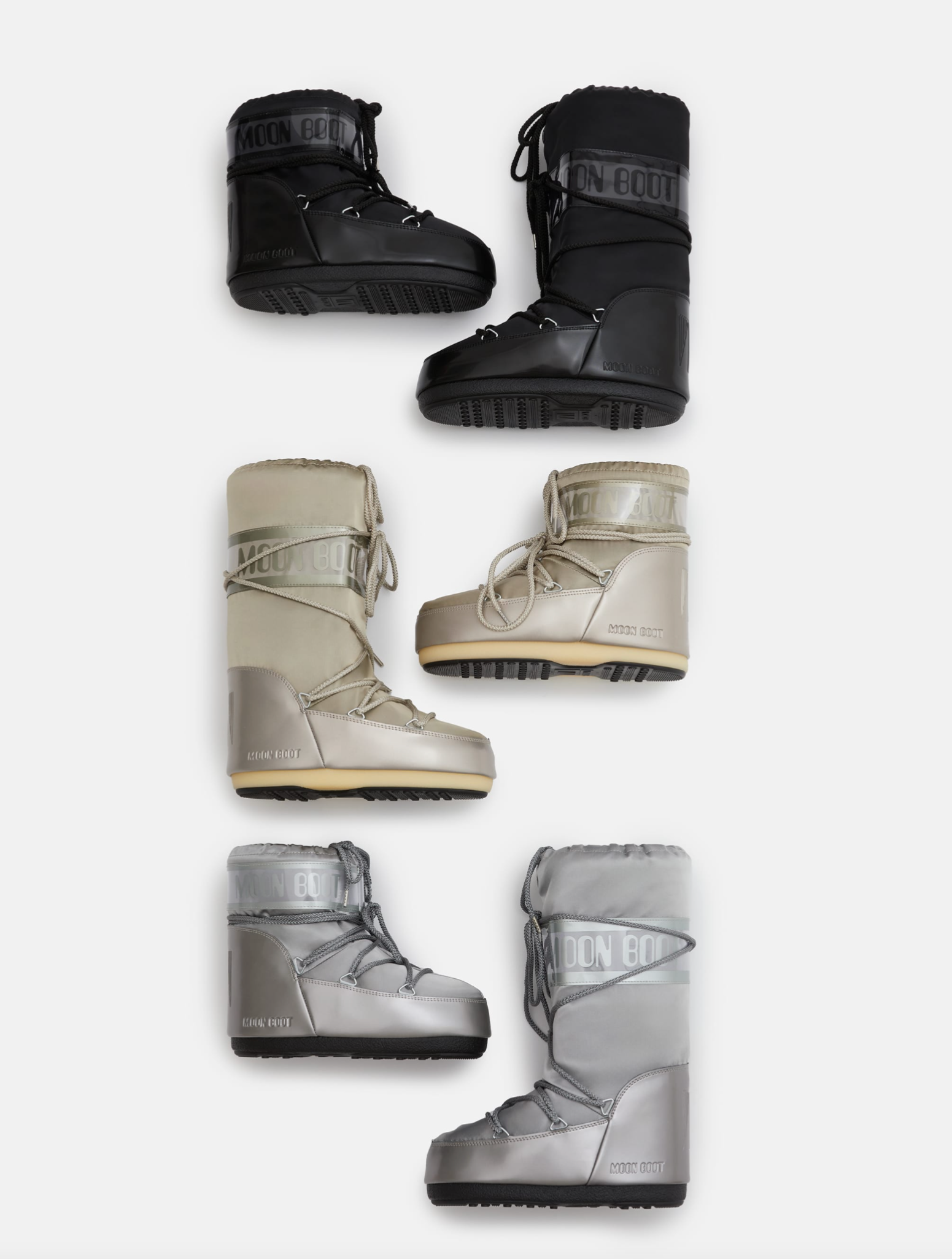 All that glitters is not gold... sometimes it’s a glossy satin Moon Boot. Inspired by the 1969 lunar landing, the Icon’s design riffs on high-technology astronaut gear. It features all the hallmarks of the original: it’s insulated, fitted with a lightweight mid sole and features suction pads on the rubber tread sole that offer serious ground control.