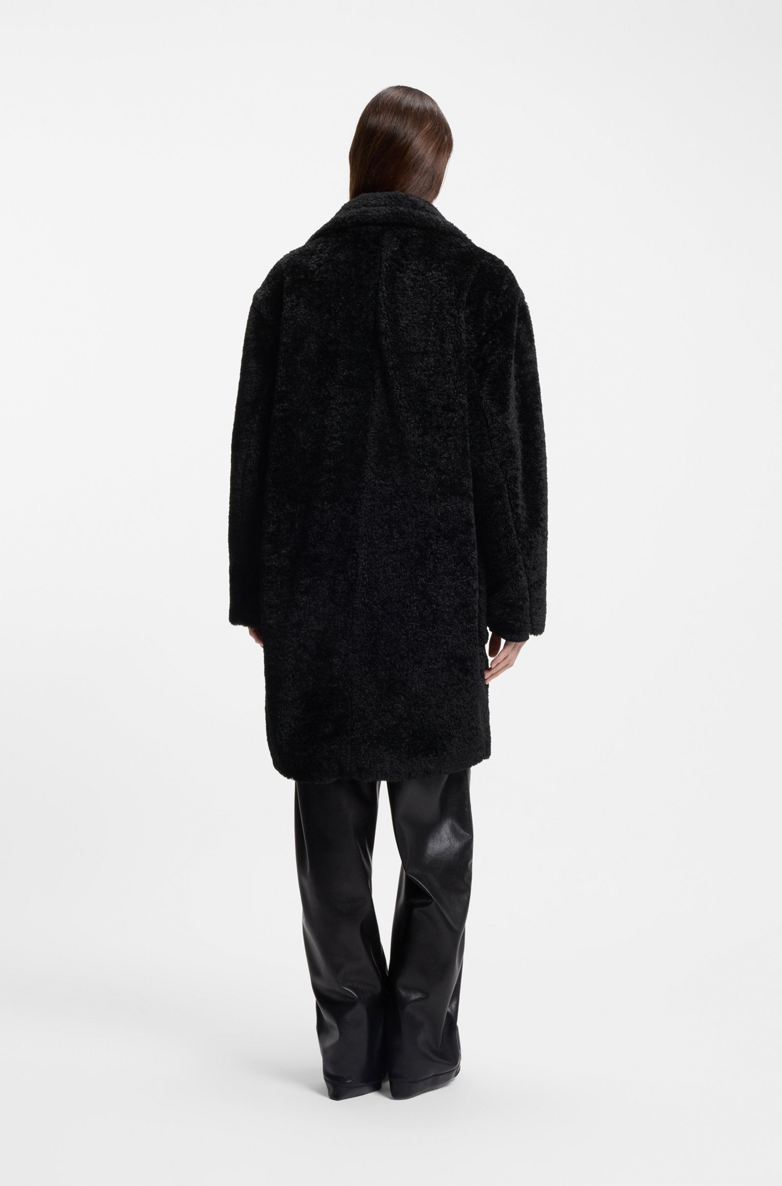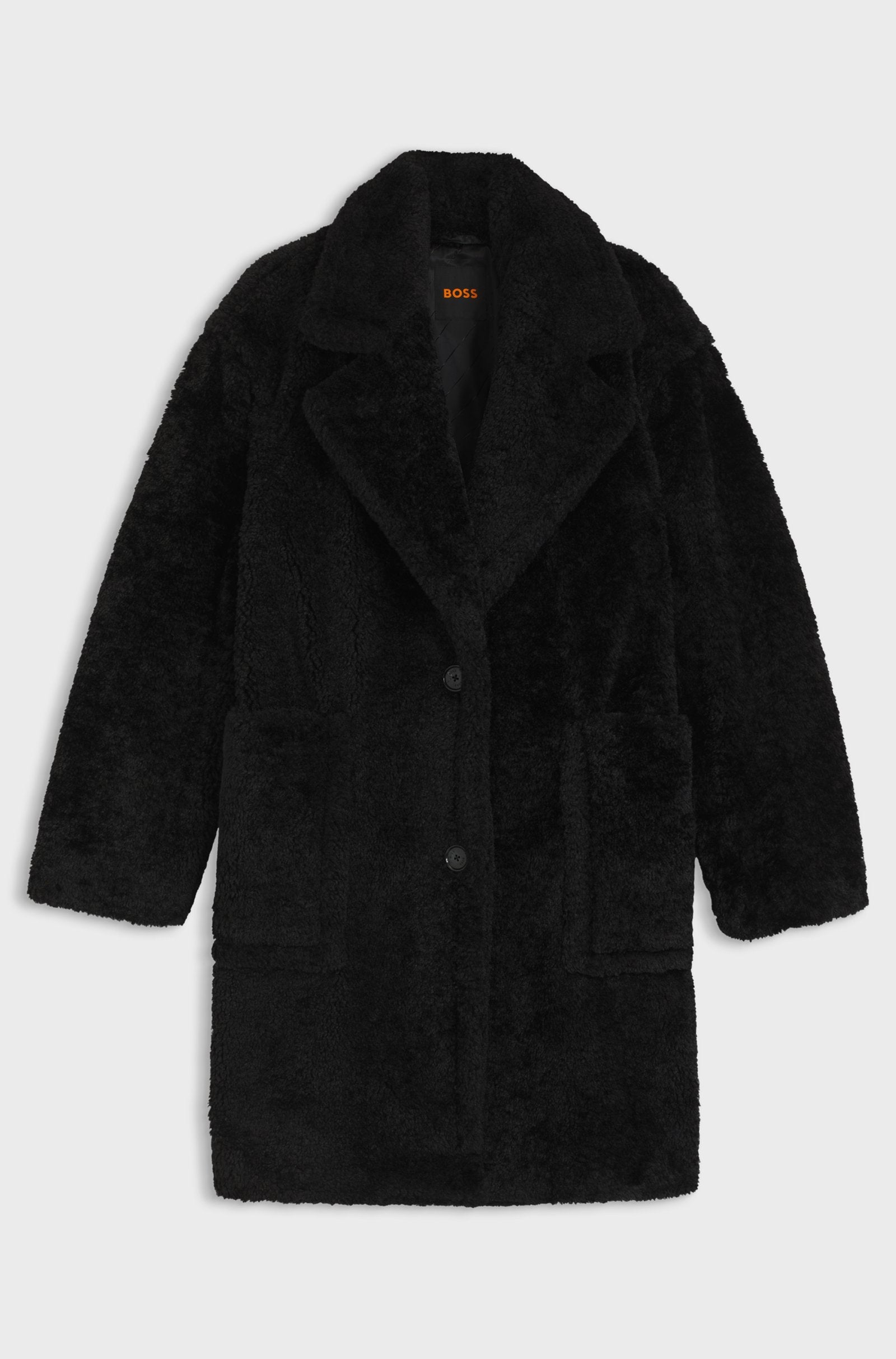 Crafted in plush teddy with logo-jacquard lining, this BOSS Womenswear coat keeps you super cosy in winter. Collar can be worn up or down.