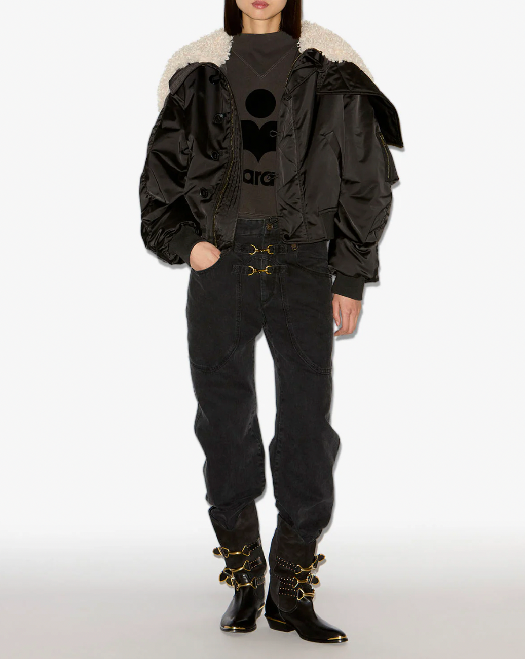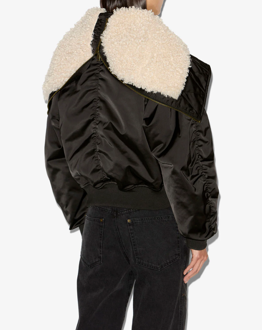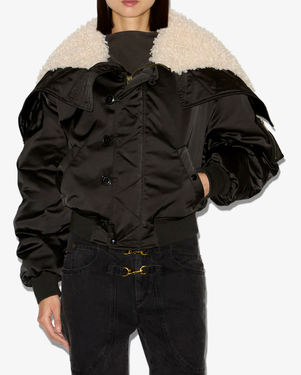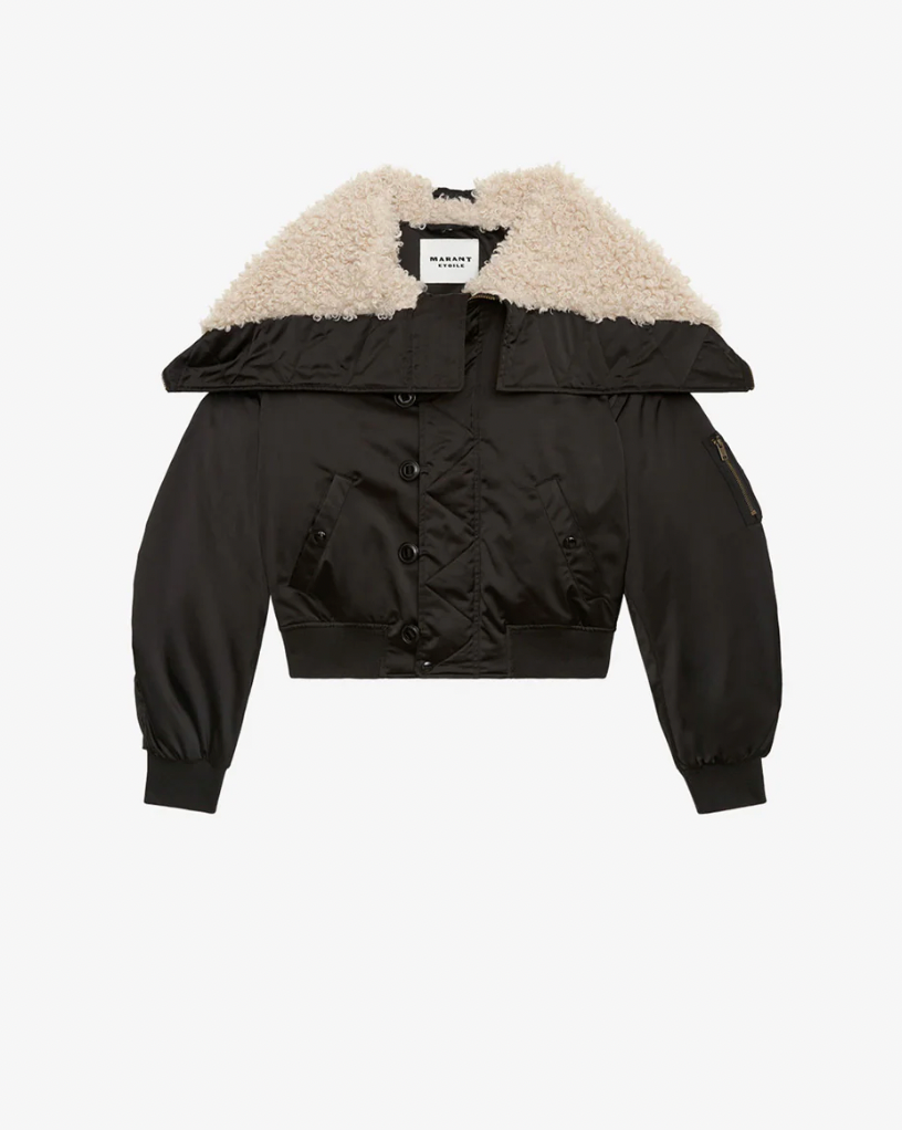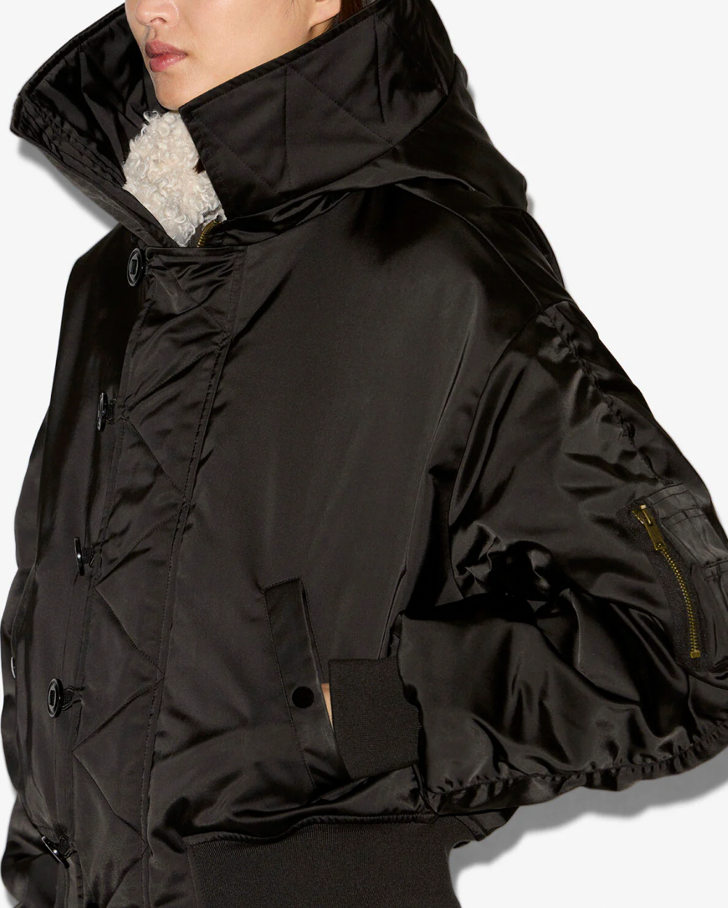 Plain-colored quilted satin nylon coat with faux fur collar from Isabel Marant.