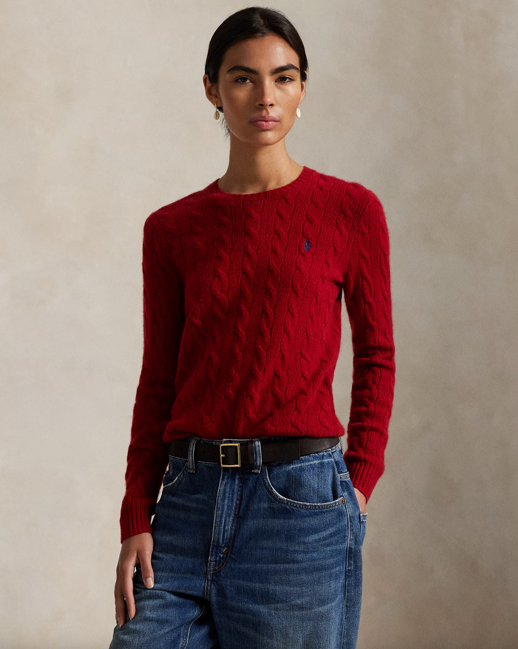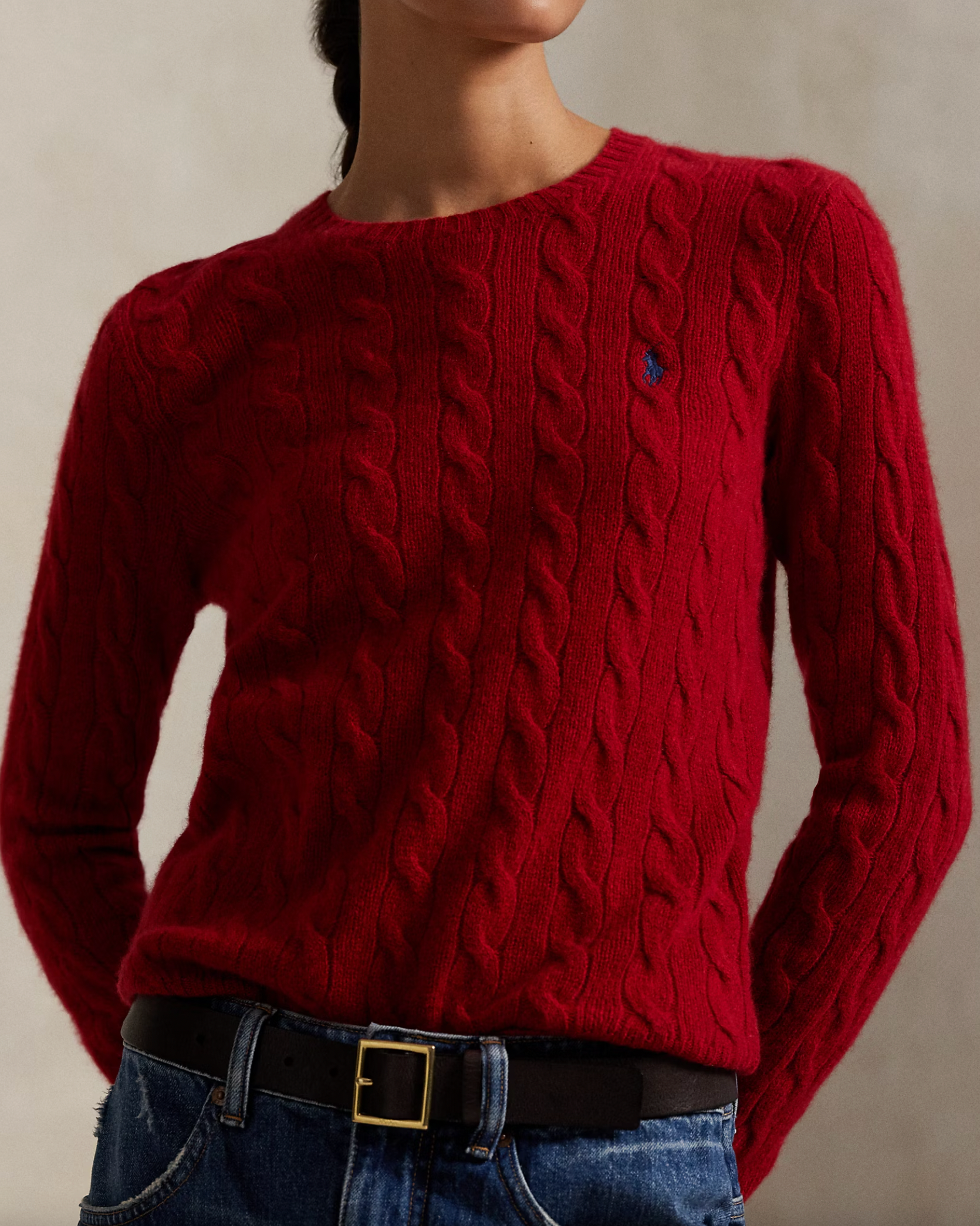 A Polo essential, this slim-fitting crewneck jumper combines a blend of soft Italian wool and cashmere with our signature cable-knit construction.