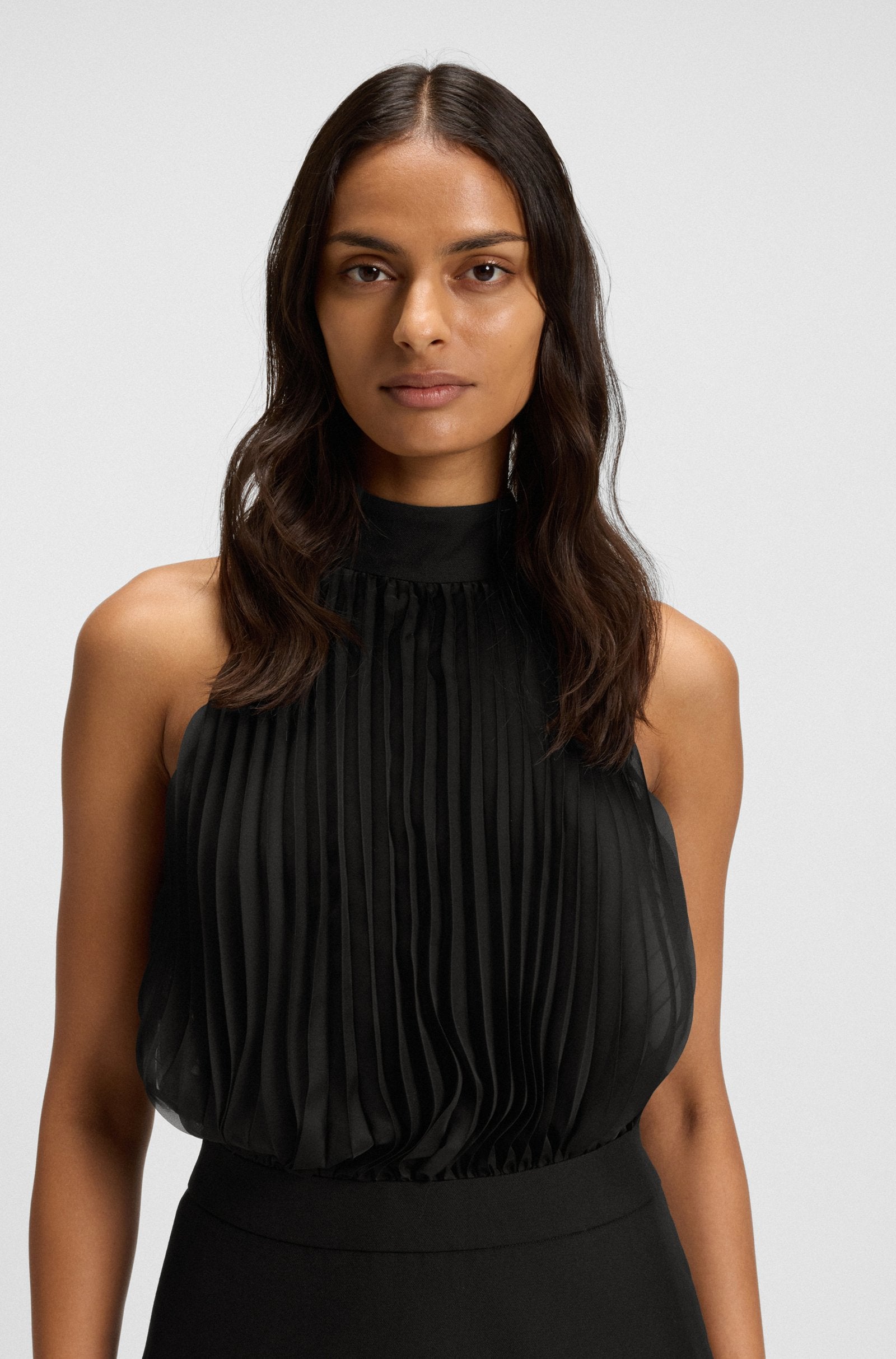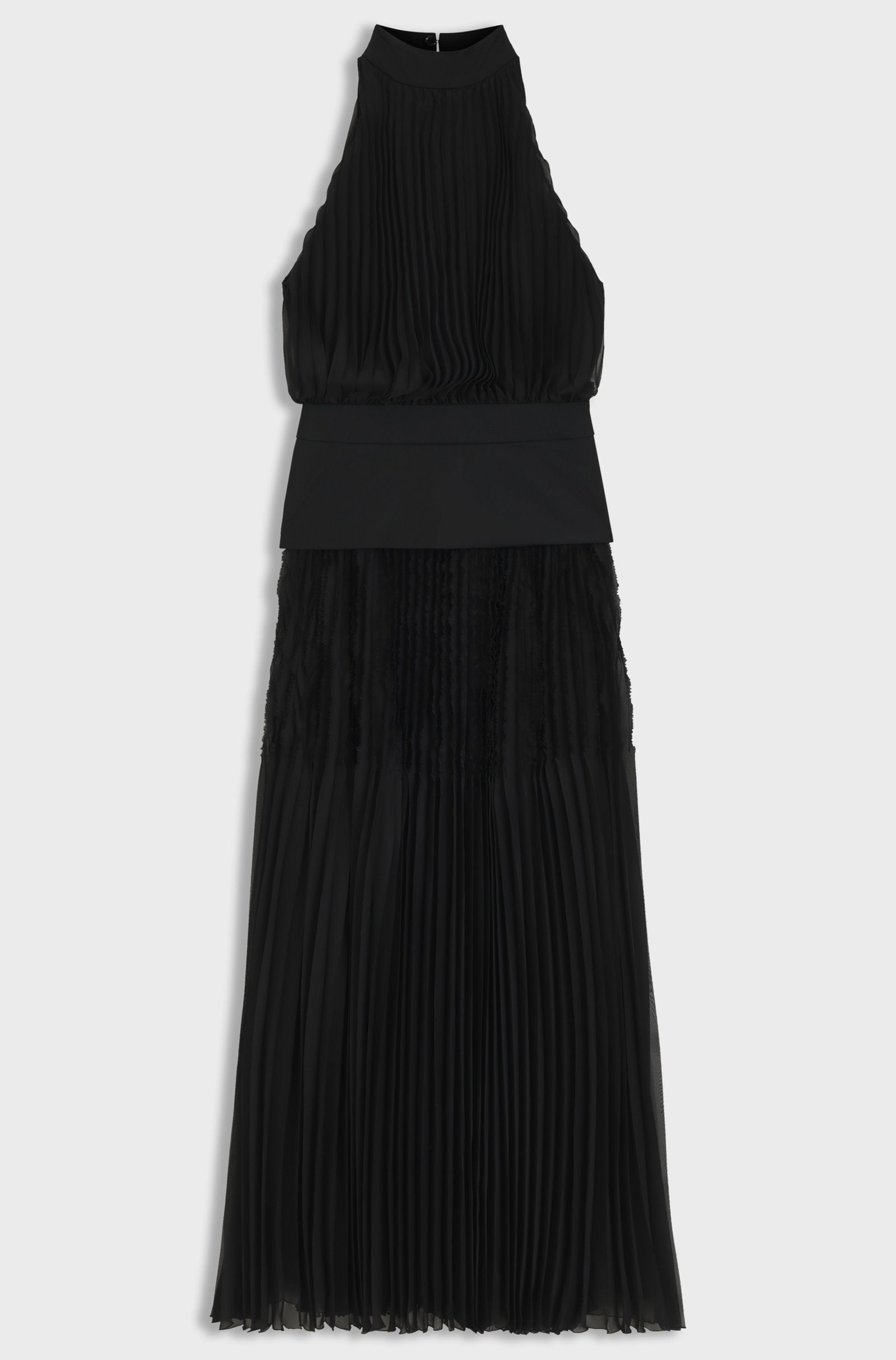 With soft plissé pleats in fluid chiffon, this BOSS Womenswear dress is the ideal party piece. Handmade fringing and solid insert blended with wool.
