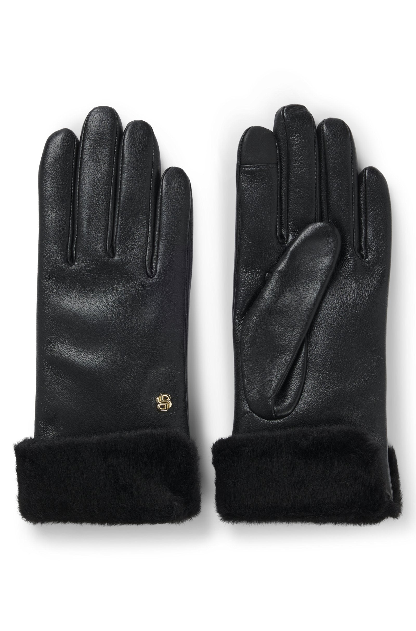 A luxurious winter warmer, these BOSS Womenswear gloves combine rich leather with fleece lining and a faux-fur cuff. Double B monogram trim.