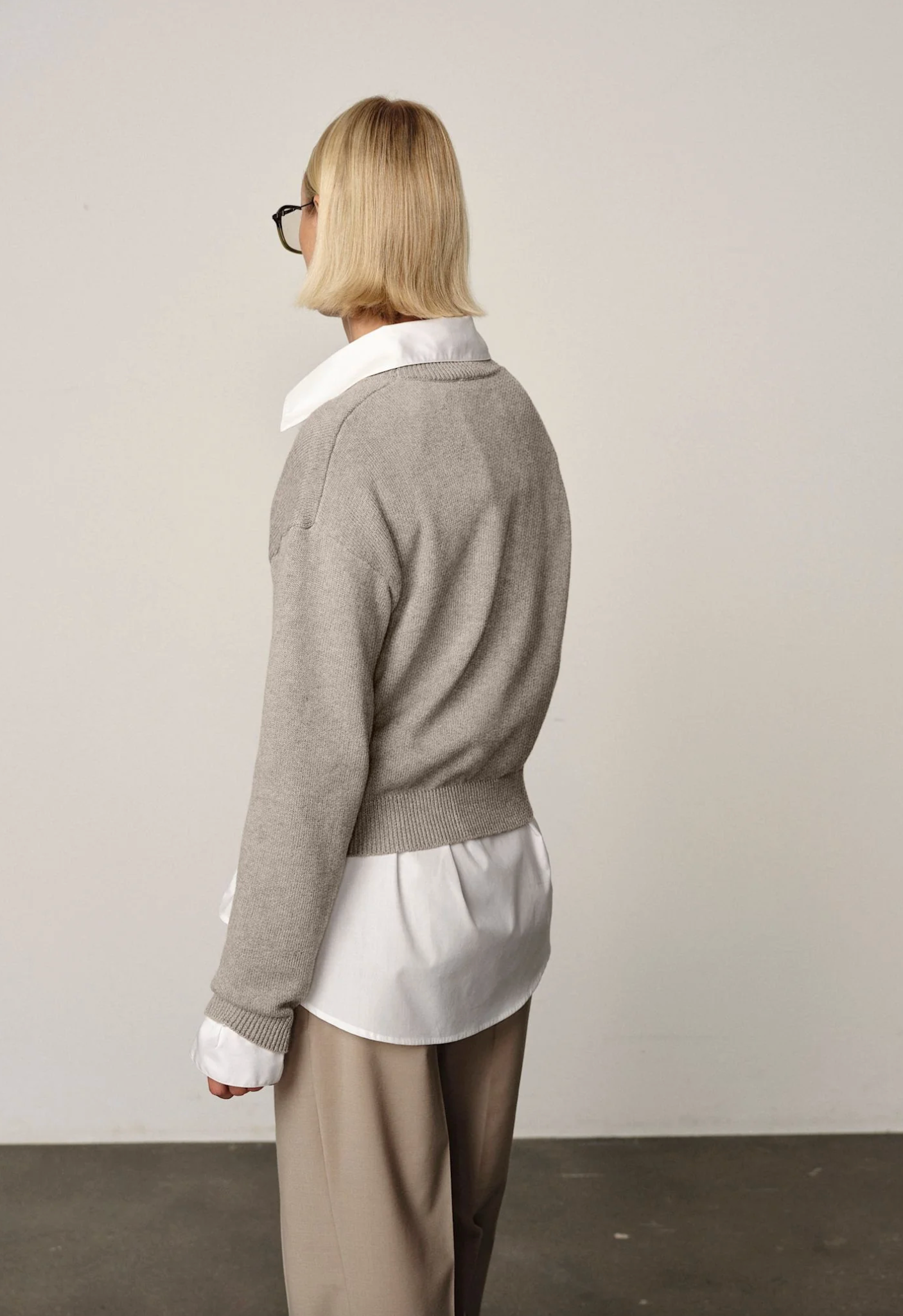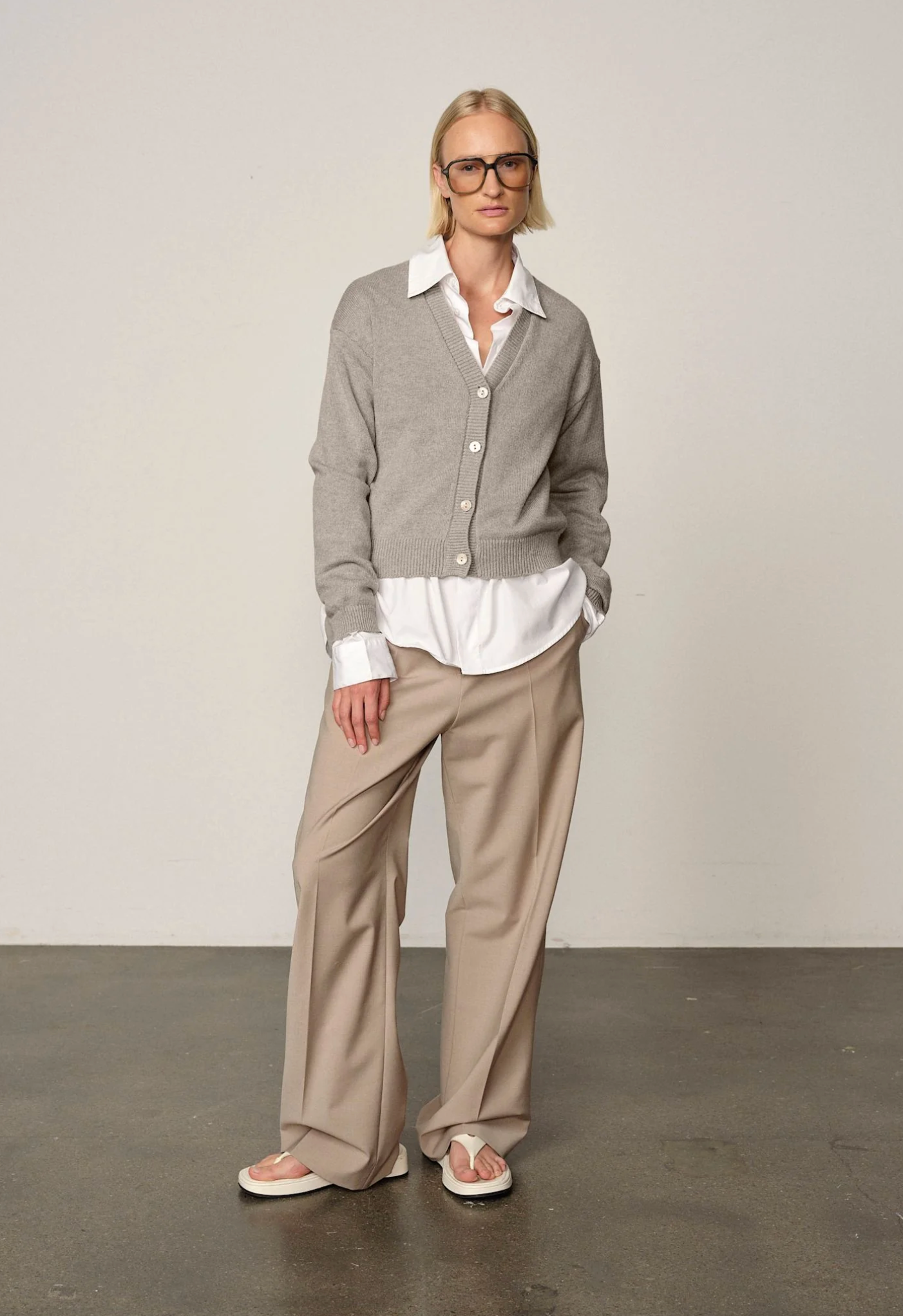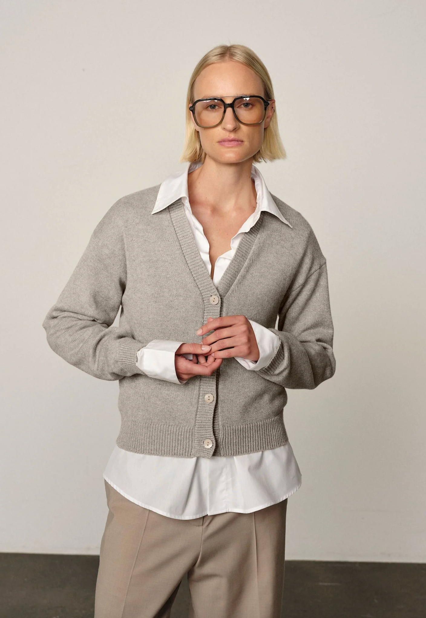 A true wardrobe stable. This lightweight knit cardigan is made in a soft organic cotton–cashmere blend. Easy to layer for all the fall days in comming.