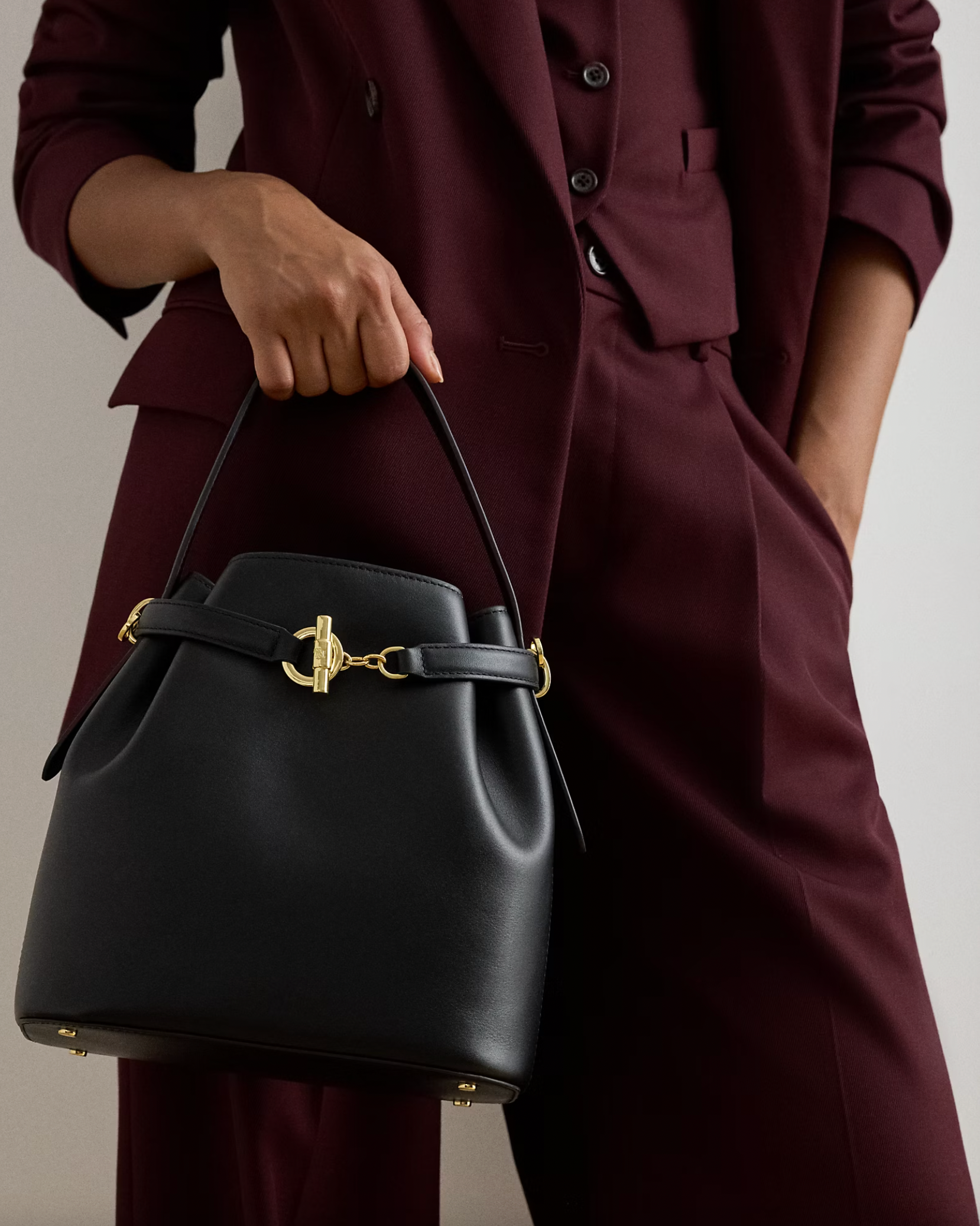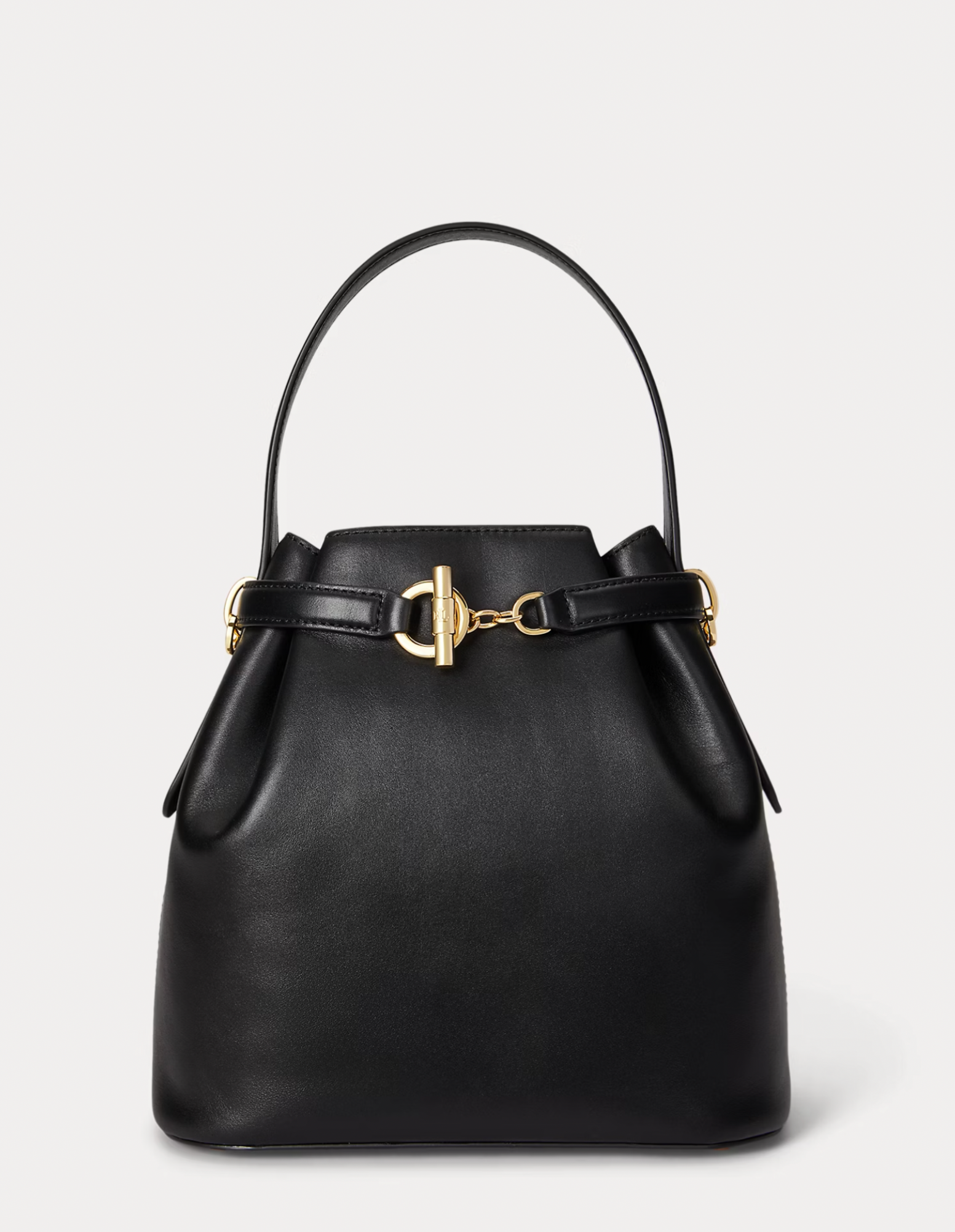 Lauren Ralph Lauren’s luxurious take on the bucket bag, the medium Blaike features a capacious silhouette crafted with supple full-grain leather for a naturally smooth finish. A top handle and removable, adjustable crossbody strap offer multiple styling options, while a toggle belting detail adds signature style.