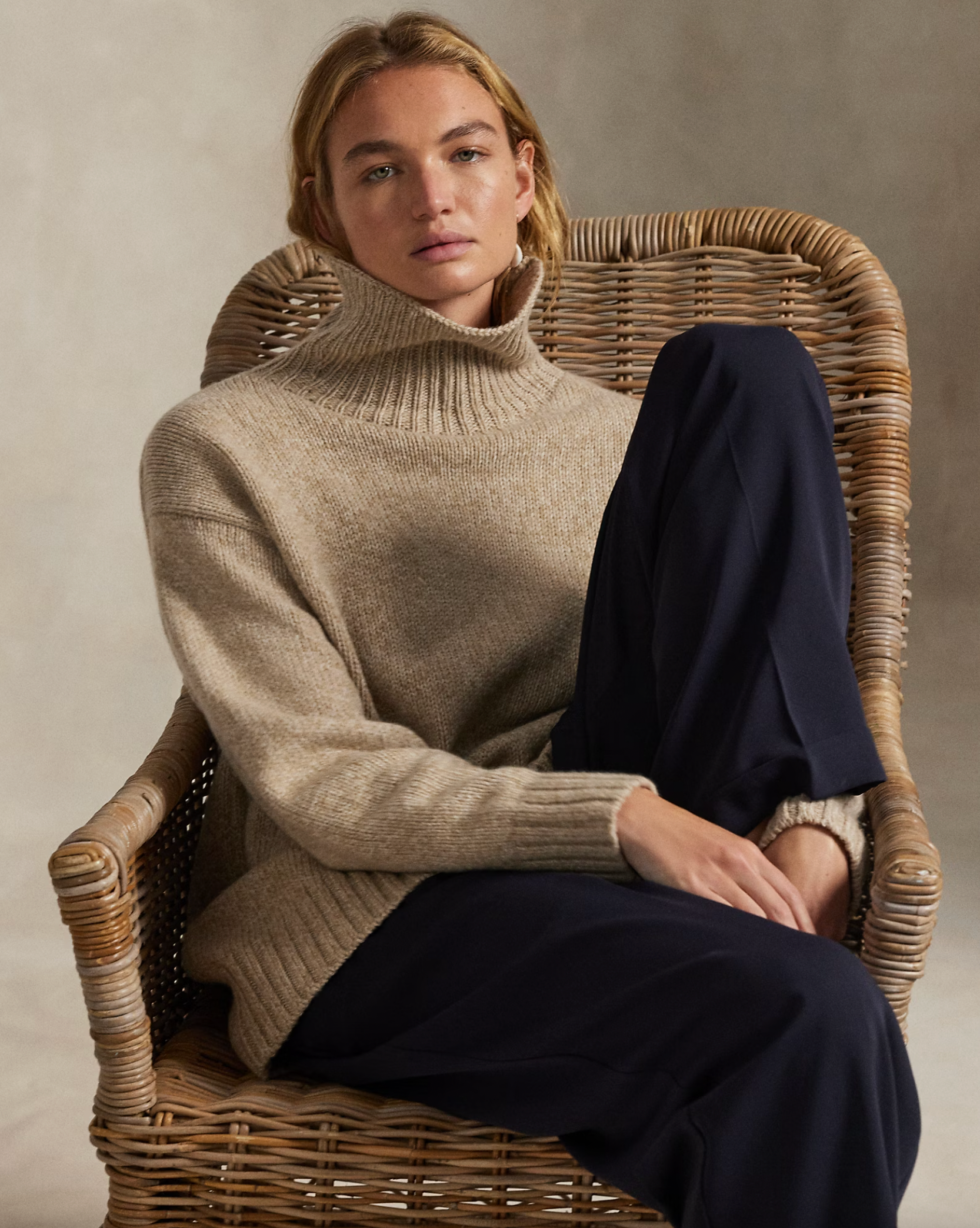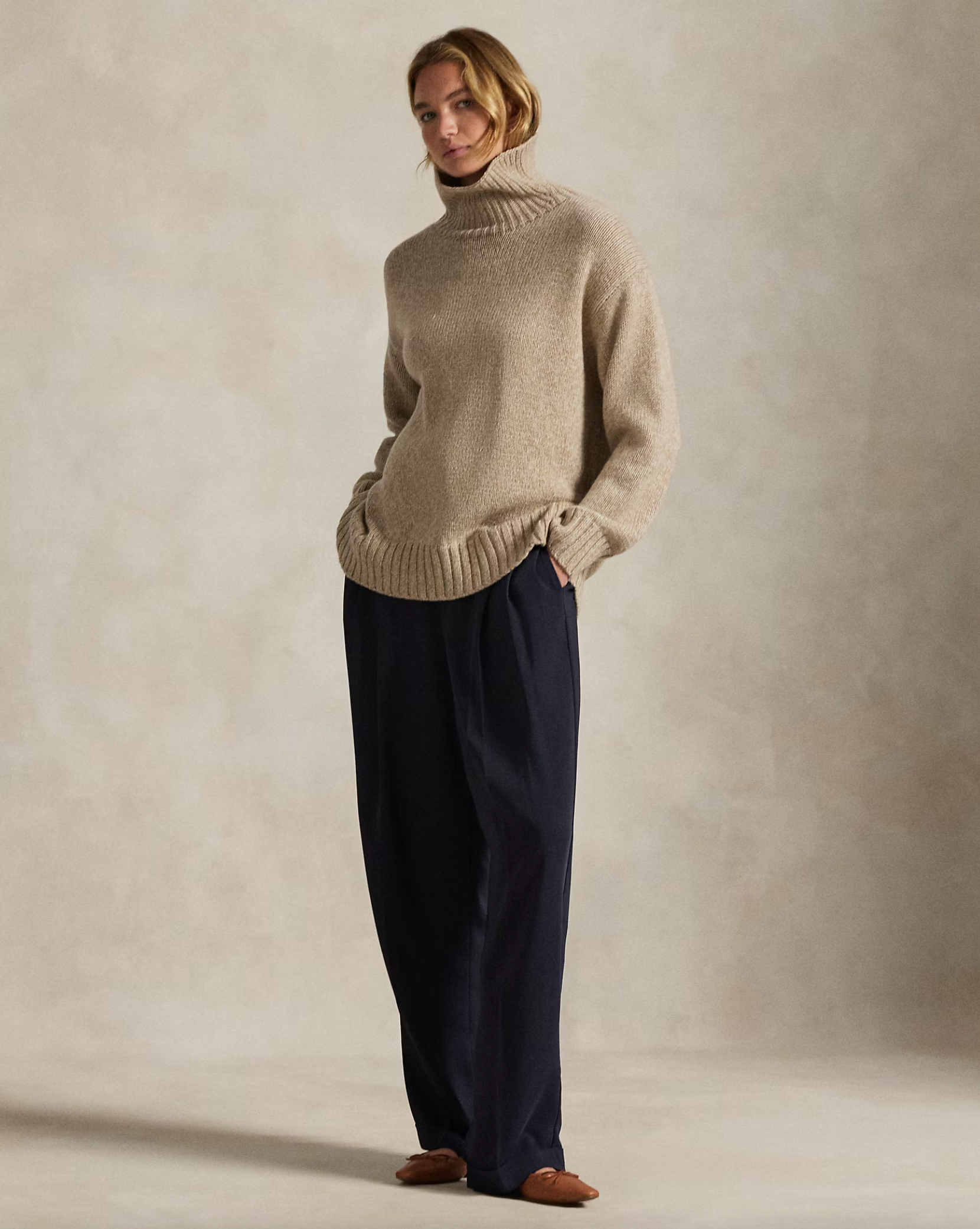 Crafted with heavyweight Italian wool-and-cashmere yarns, this chunky turtleneck jumper is knit with dropped shoulders for a relaxed silhouette.